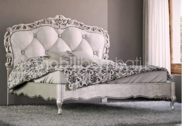 Letto stile barocco in legno di tiglio intagliato a mano di nostra produzione, con bottoni in cristallo Swarovski originali. Finitura a scelta. Dimensioni 212x190xh152. Letto artigianale di gran pregio da non confondere con simili di importazione che sono in resina o poliuretano.