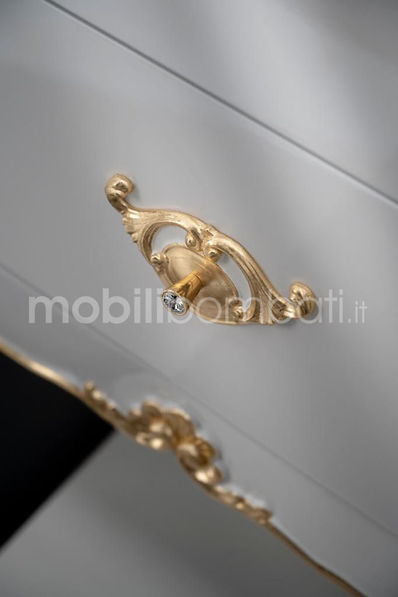 Mobile bagno in massello laccato bianco con finiture in foglia oro.