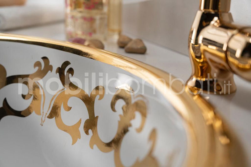 Top in marmo bianco e vasca artigianale decorata in oro zecchino.